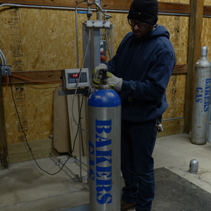 Seeing that dry ice is -109° F if you accidentally touch it with your bare hands, it will leave you with a pretty nasty and painful burn. That being said, do not touch it with bare skin. If you are required to disperse dry ice into containers outside of the holding container that you receive from Baker's Gas, be sure to use a scoop of some sort and always use protective gloves.